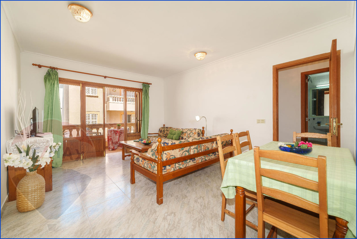 Dieses gepflegte Erdgeschoss-Apartment in Can Picafort erstreckt sich über 71 m² und befindet sich in einer ruhigen Wohnlage. Es verfügt über zwei geräumige Doppelschlafzimmer, ein Badezimmer sowie ein großzügiges Wohn- und Esszimmer. Außerdem bietet die Wohnung eine separate Küche und einen Hauswirtschaftsraum. Sie liegt im Erdgeschoss eines gut erhaltenen Gebäudes mit Treppenaufgang und einer gemeinschaftlich genutzten Dachterrasse. Zu den Ausstattungsmerkmalen gehören Holzfenster mit Einfachverglasung, traditionelle Holzläden, Fliesenböden und praktische Einbauschränke. Die Wohnung ist bezugsfertig und wird komplett möbliert verkauft.Lagebeschreibung:
